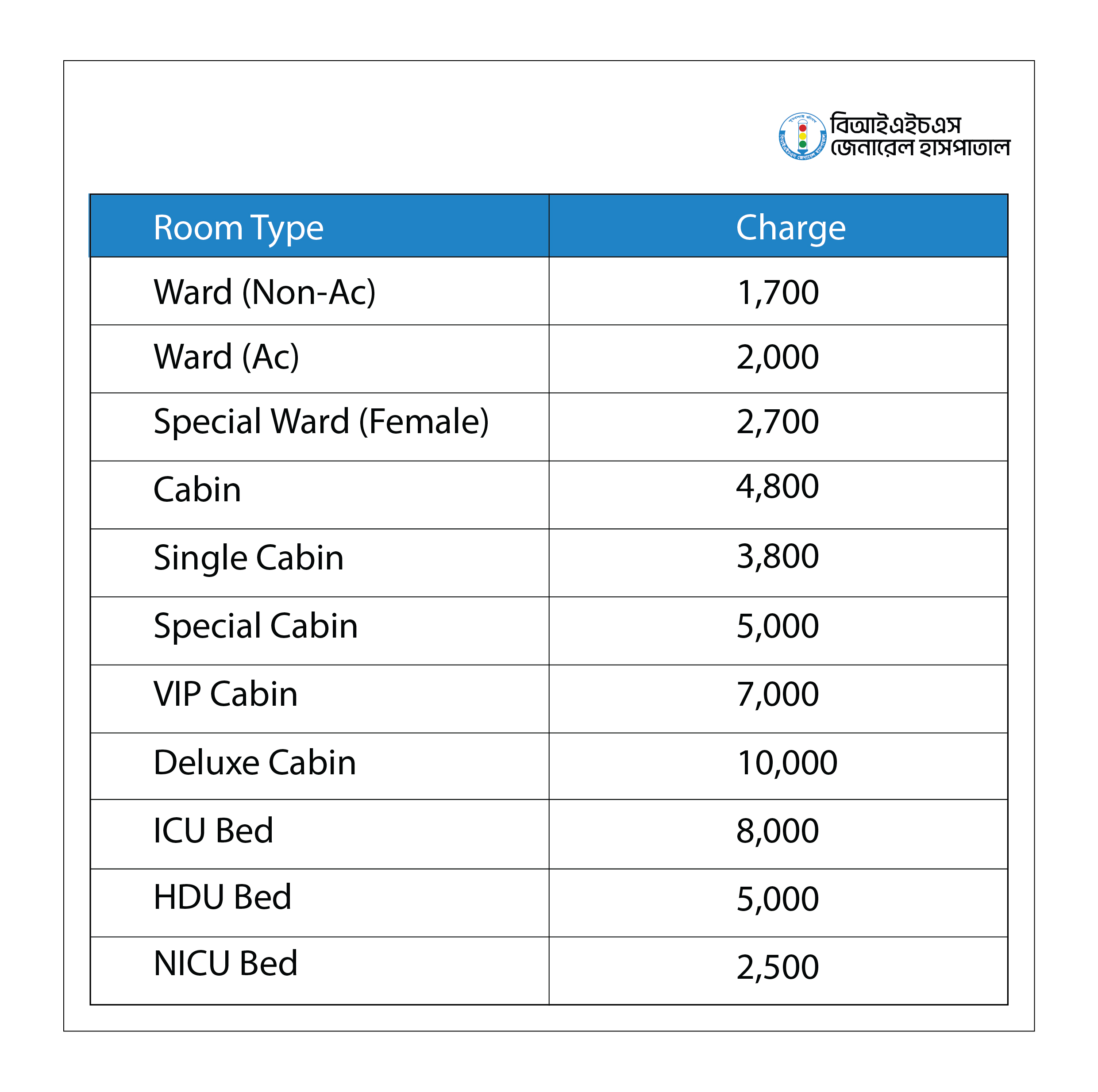 You may choose from different categories of in-patient beds/rooms of the hospital, including General Ward (AC/ Non AC), Special Cabin, Deluxe Cabin & VIP Cabin (all cabin categories are equipped with AC facility). Beds/Cabins are allotted depending on your choice and availability. We also have a Day Care Unit for patients who have had outpatient procedures. We also have a specialized state-of-the-art 8-bed ICU, 8-bed HDU & 14-bed NICU for neonates.